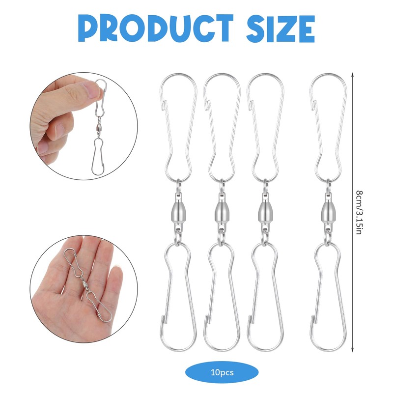 GEEHUA 10 Stück drehbare Doppelhaken Clips, Windspinner Aufhänger, Spiralschwänze, Twister, Windsocken für Spinner, Windsocken, Drachen, Blumentöpfe, Vogelhäuschen, Flaggen, Partyzubehör