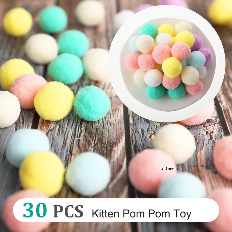 GEEHUA Pack of 30 Cat Toy Ball, 3 cm Soft Cat Balls Pompom Ball for Indoor Cats Interactive, Training Cats Toy Pom Pom Balls for Pets Play (Colour A)