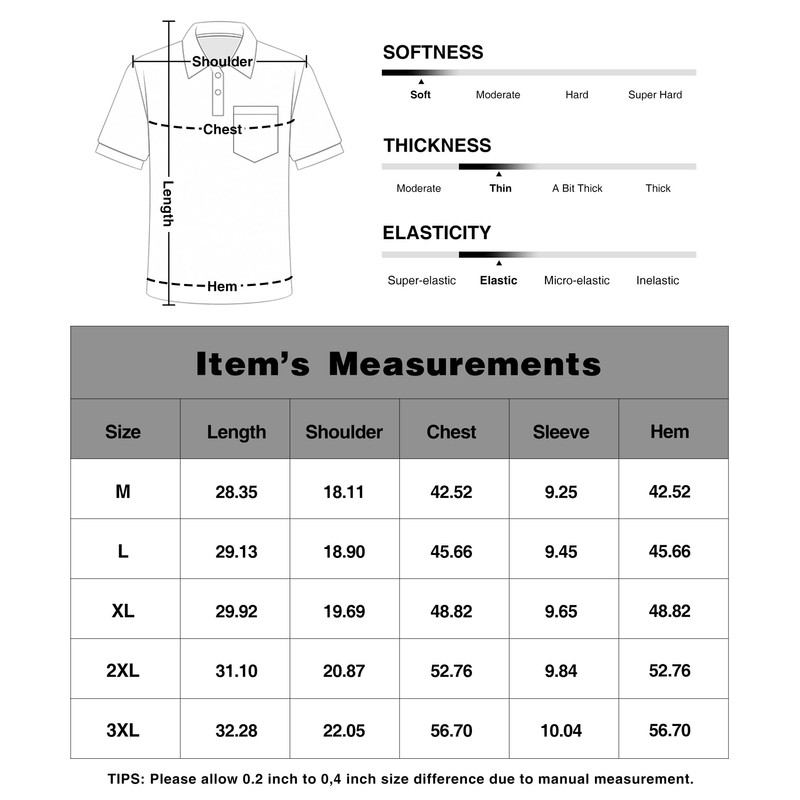 - Material: This mens polo shirts is made from a blend of 95% polyester and 5% elastane, offering a smooth and fine texture that enhances flexibility for men during outdoor activities and work