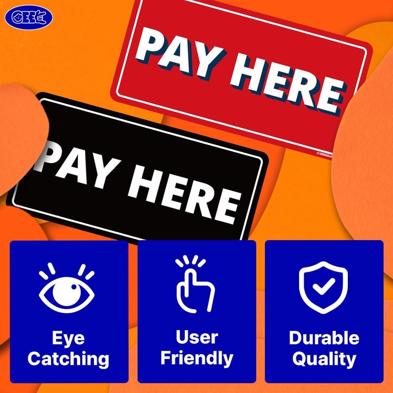 • 【COMPLETE PACKAGE】 - GEEKBEAR's Pay Here Signs include 1 sign and 1 hanging hooks for easy installation.