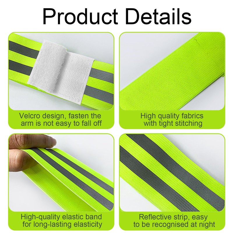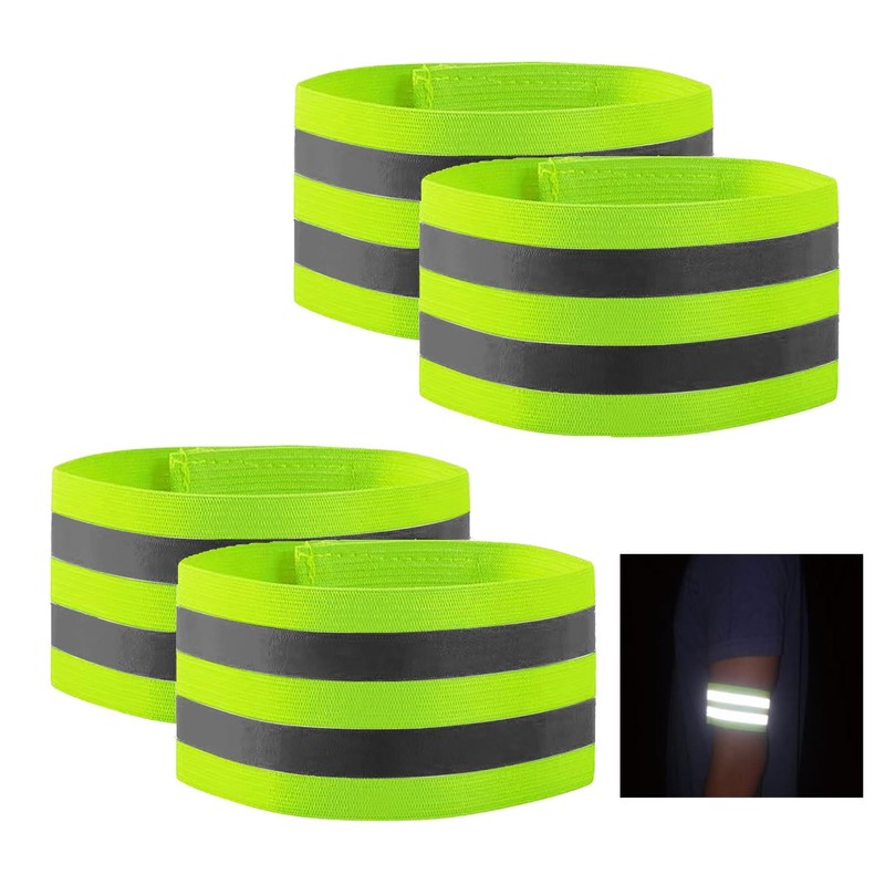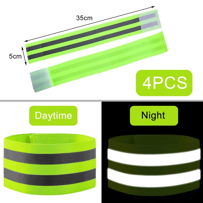 - Practical: set of 4 reflective bands, size 35 x 5 cm, double striped reflective band highlights you in the dark, so you can be seen in the dark.