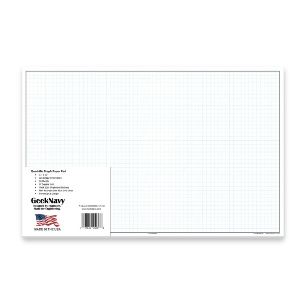 - Larger Canvas for In-Depth Drafting- 11" x 17" Landscape pad designed for clearer, larger-scale blueprints and sketches, aided by a clear 0.25” 4x4 quadrille small blue dot grid with borders.