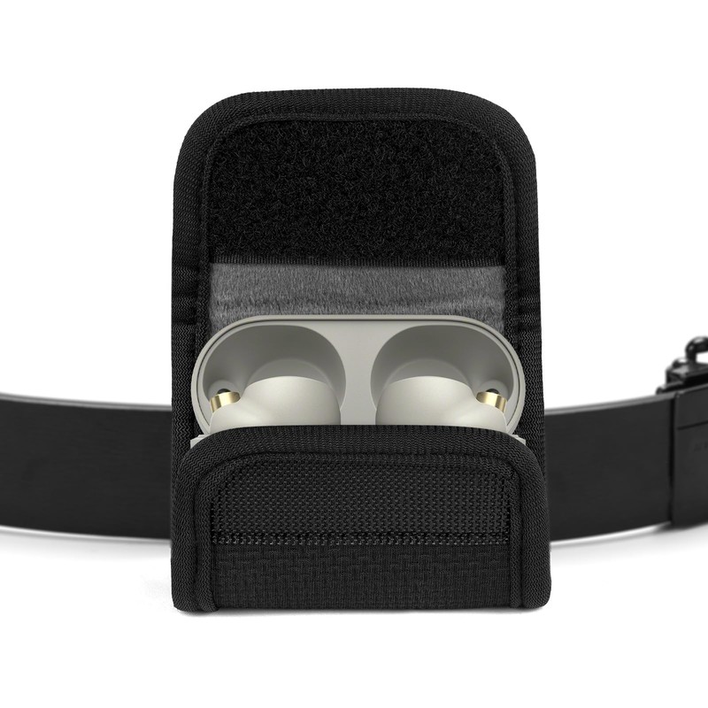 Geekria Earbuds Pouch with Belt Loop Compatible with Sony WF-C510, WF-1000XM5, WF-1000XM4 Earbud Case Belt Holster, Protective Case Cover with Clip Holder for Bag Strap (Black)