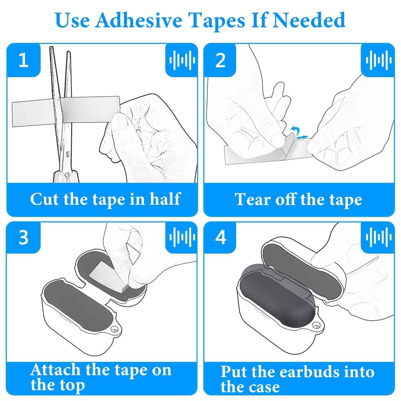 • Tiras adhesivas en el interior para un ajuste más seguro. Portátil con gancho para llavero. Corte especial para cargar tus auriculares sin quitar la funda.