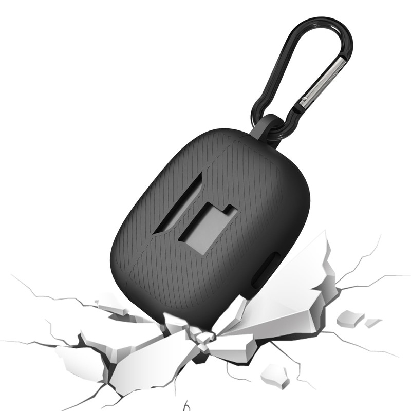 Geekria Silicone Case Cover Compatible with JBL Vibe Beam True Wireless Earbuds, Protective Earphones Skin Cover with Keychain Hook, Charging Port Accessible (Black)