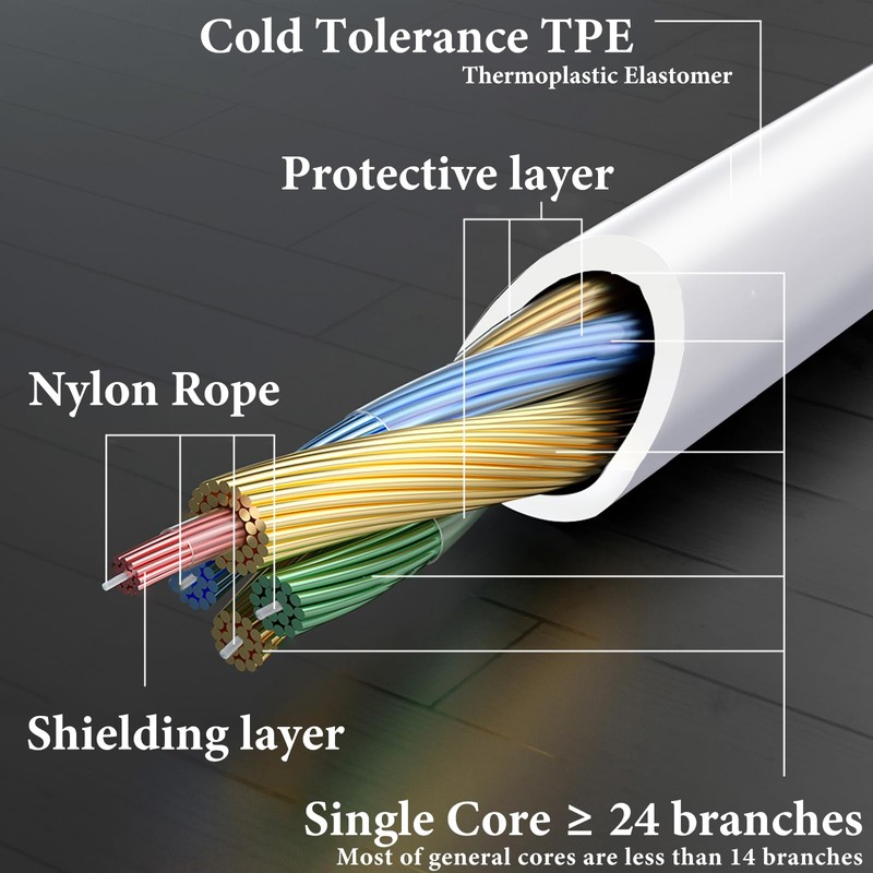 • Elastómero termoplástico (TPE) y resistente, garantizan la transferencia de audio superior contra interferencias electrónicas magnéticas o de radio (EMI o RFI), temperaturas extremas de frío o calor y máxima protección.