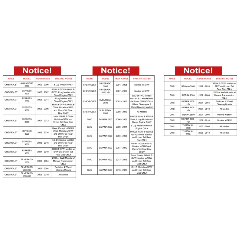 MAKE | MODEL | YEAR RANGE | SPECIFIC DETAILS |