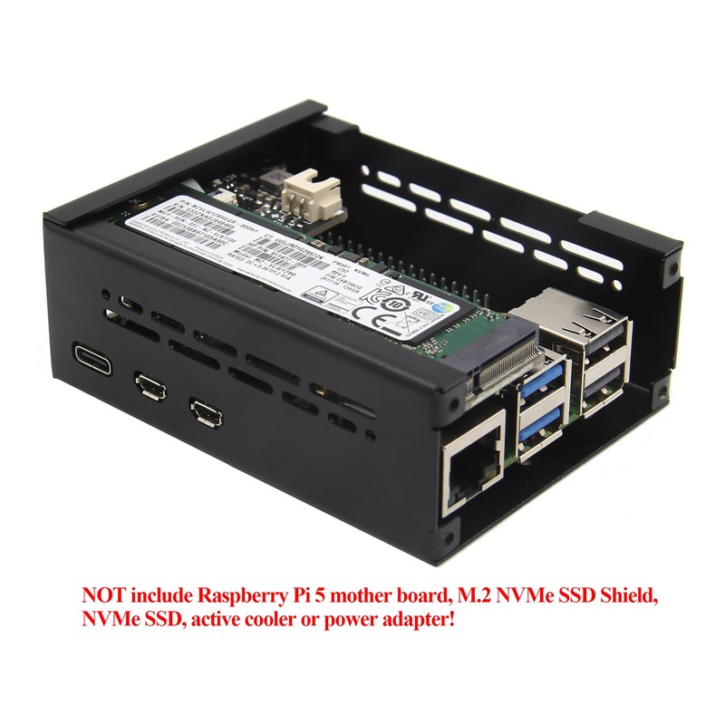 - Note: Not include Raspberry Pi 5 motherboard, X1000/X1001 M.2 NVMe SSD shield, M.2 NVMe SSD, Raspberry Pi 5 Active Cooler, or power adapter. !