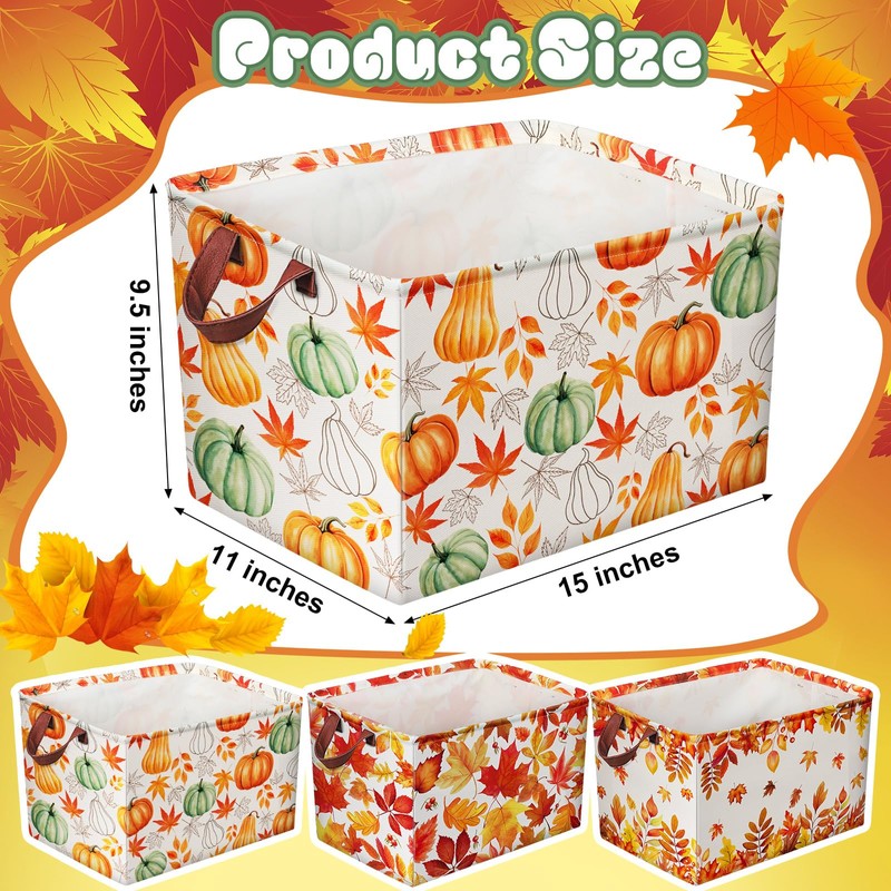 - Sufficient Quantity: you will receive 3 fall storage boxes, enough to meet your family use needs; Comes with a portable handle to make organizing Autumn treats and items easier, providing a reliable and stylish storage solution