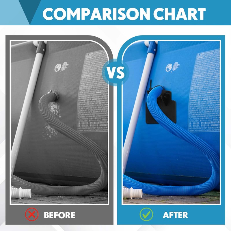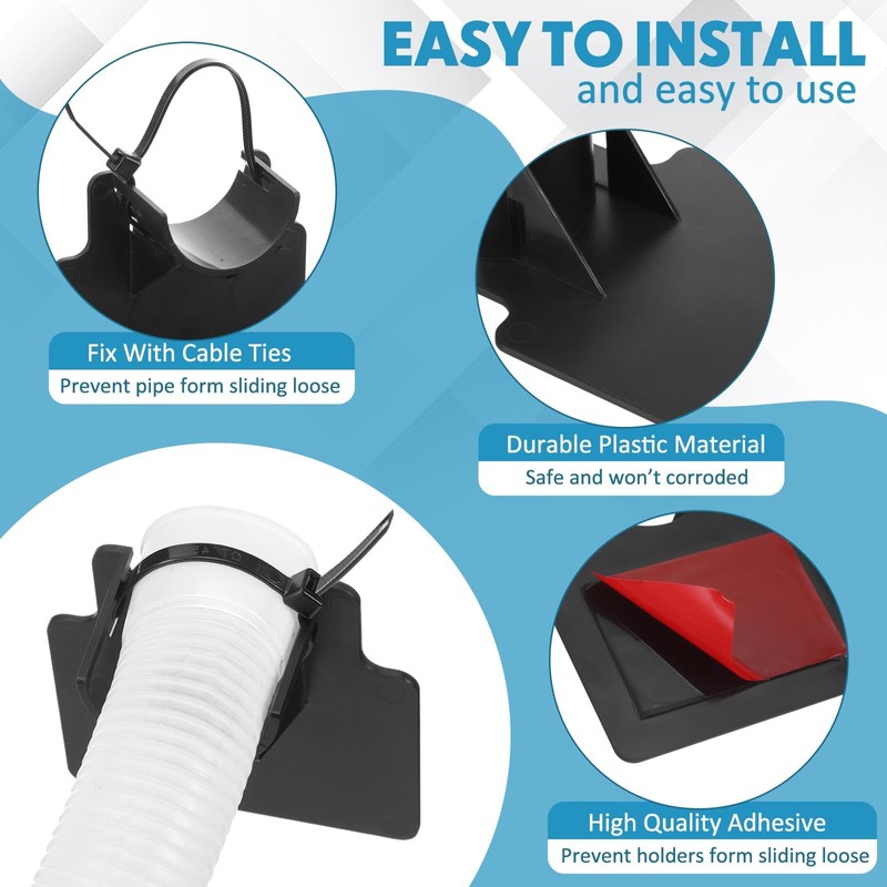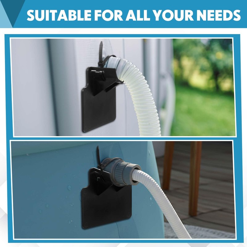• Quick and Simple Installation: our product packaging comes with instructions; Setting up your pool pipe holders is a breeze with our 4 step installation process; Simply block the outlet to stop water flow, remove the hose, use the included waterproof double sided tape to position the holder, and secure the hose with the nylon ties; Enjoy a reliable and efficient above ground swimming pool with minimal effort