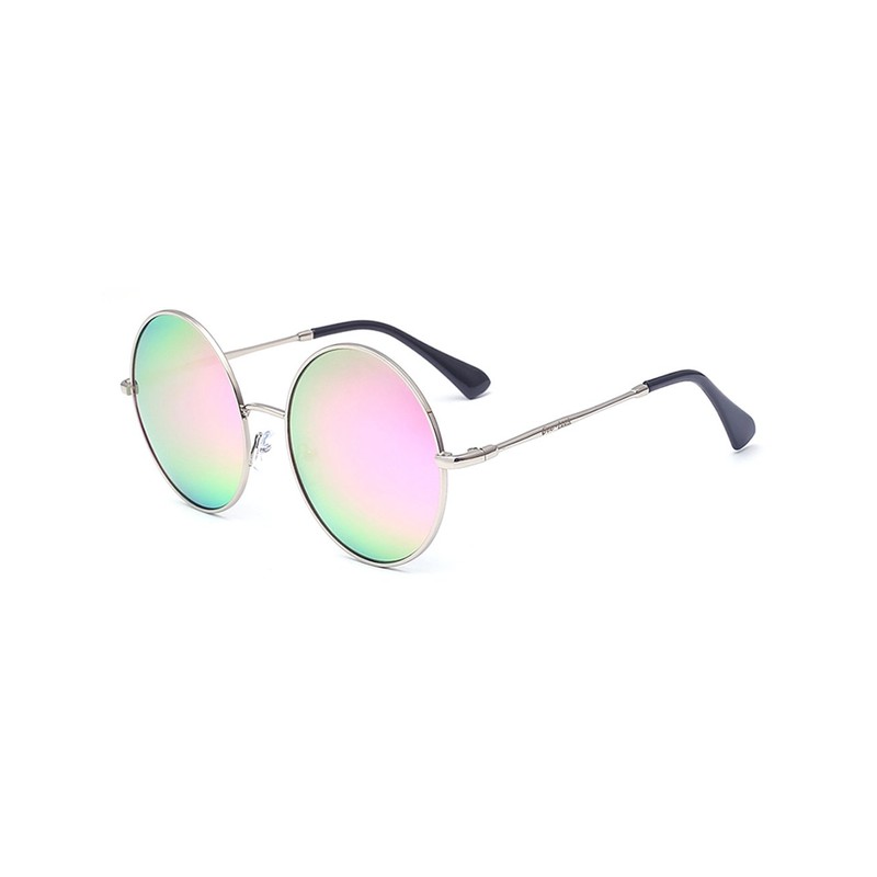 GEELOOK Round Sunglasses for Women Men Classic Oversized Circle Mirrored Hippie Hipster Polarized Sunglasses Metal Frame Pink Lens