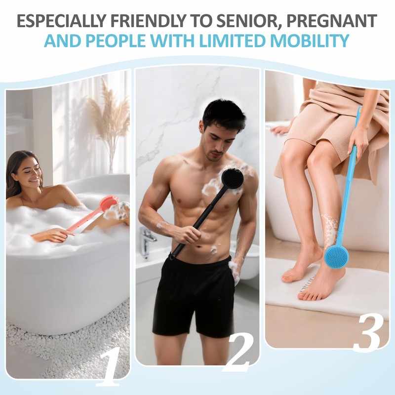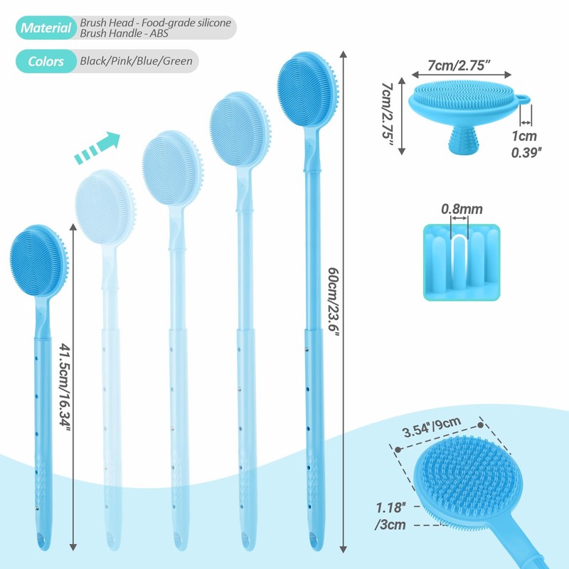 - 【Adjustable 5-Length Extra-Long Handle】Back brush's handle can be adjusted to five different lengths to meet different needs. Shortest one is perfect for hand-hold brushing, medium length for scrubbing back and legs, longest one for brushing feet and toes without bending, which is especially friendly to seniors, pregnant and people with limited mobility. The unique extendable handle brings excellent non-slip experience to your shower!