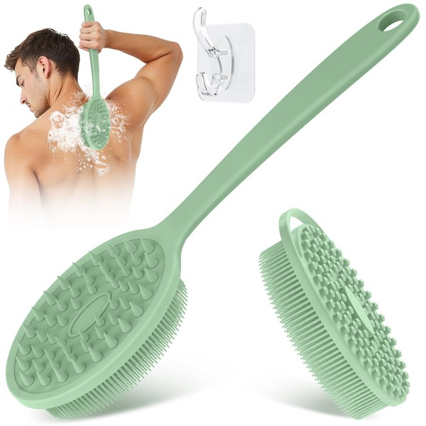 - 【Easy-to-care & Eco-friendly】Silicone back/body scrubber set is easy to clean, quick-drying and no molding. You just need to rinse and hang dry. It’s super durable to last for a long time. Package includes: back scrubber x1, body scrubber x1, free hook x1.
