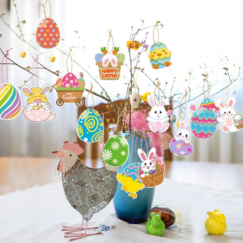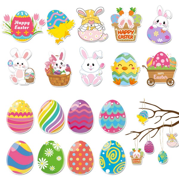 Geepen Easter Decorations 18PCS Hanging Easter Eggs Easter Bunny Hanging Decorations for Easter Basket Tree Easter Cards Easter Gifts Easter Crafts for Kids Toddlers Teens