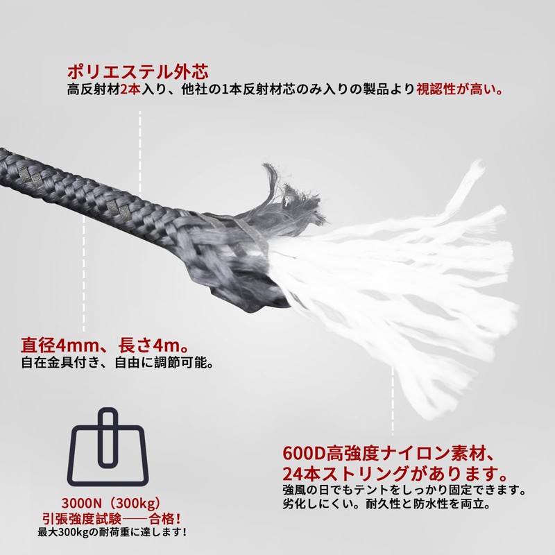Geer Top Guy Rope, 0.2 inch (4 mm), Tent Rope, Paracord for Tarp, Carabiner, Includes Line, Reflective Materials, Flexible Hardware, Load Capacity 572.3 lbs (260 kg), Length 8.8 ft (4 m), Storage Bag