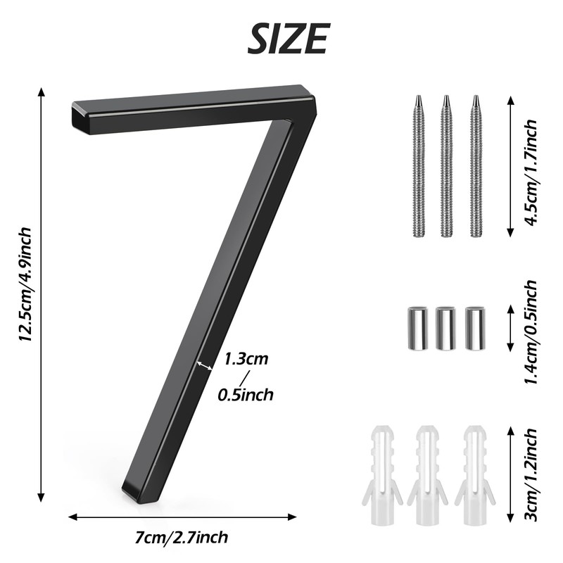 GeeRic Floating House Numbers 5 Inch Address Numbers Zinc Alloy Rust Proof for House, Garden Door Mailbox Decor Number with Nail Kit, Coated Black Visibility Signage (7)