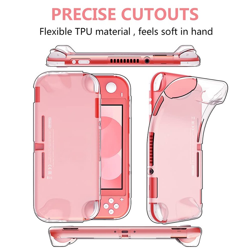 - 【Conjunto de Accesorios Todo en Uno Compatible para Switch Lite】 1 x Funda Compatible para Switch lite , 1 x Carcasa Transparente Anti-Rasguños, 2 x protectores de pantalla Anti-golpe, 2 pares de protectores de gel Antideslizantes para el pulgar, + paños de limpieza para la pantalla.