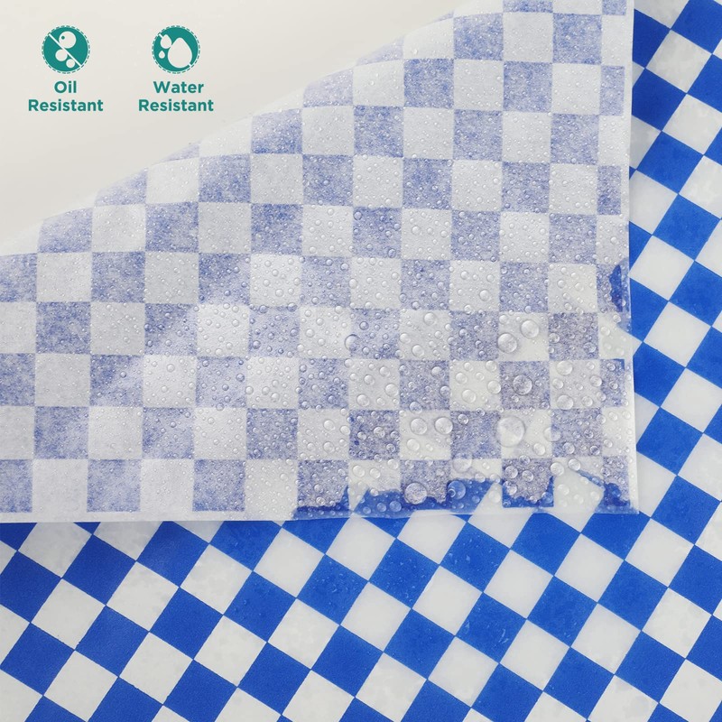 GeeRic Waxed Deli Paper Sheets 12 * 12 Inch, 100 Pcs Food Basket Liners for Sandwiches, Burgers, Checkered Deli Wrap Wax Paper Sheets Blue