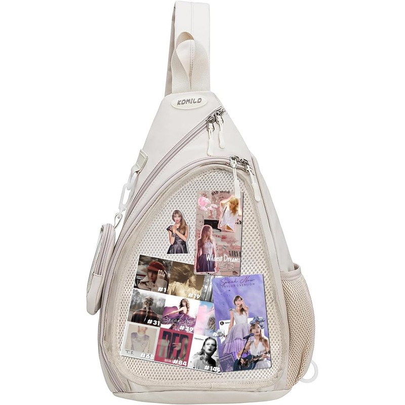 Geerlaqaly Ita Bag Kawaii Pin Display Chest Pack Single Shoulder Bag unisex, nylon,sports travel, anime exhibition, with coin purse, card bag, pin pendant,white