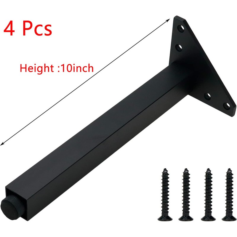 - The 4 Legs can add the height for your furniture, such as closet, cabinet, sofa, TV stand, table, etc. Adjustable Height Range: 0-0.4 inch / 0-10mm. Height: 10 inch / 25cm. Plate Size: 3 x 3 inch / 7.8 x 7.8 cm. Plate Thickness: 3.8 mm / 0.15 inch.
