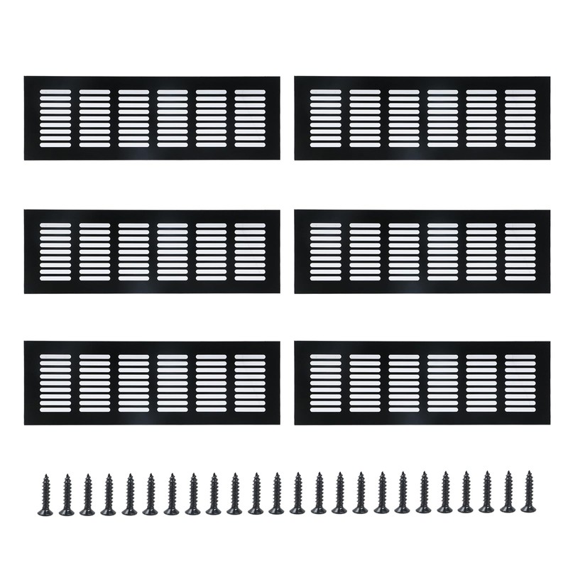 Geesatis Air Vent Ventilation Grille Cover Soffit Vents 200 x 80 mm / 8 x 3.1 inch for Cabinet, Shoe Wardrobe, Bookcase Hardware, with Mounting Screws, Black,6Pcs