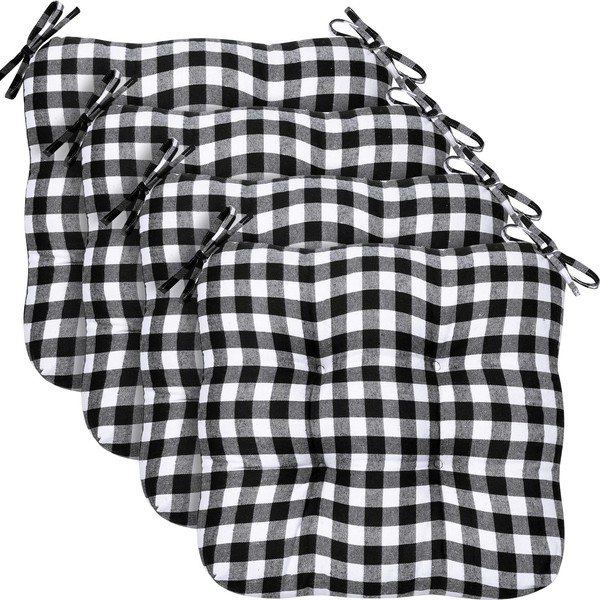 Geetery 4 Pack Chair Cushions Dining Kitchen Office Chair Seat Cushion Kitchen Chair Pads with Ties Buffalo Plaid Patio Outdoor Chair Cushions for Dining, Outdoor, Patio, Chair(Black, White)