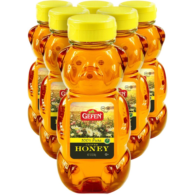 Gefen US Grade A Honey Bears, 12oz (6 Pack) 100% Clover Honey, No Fillers, Gluten Free
