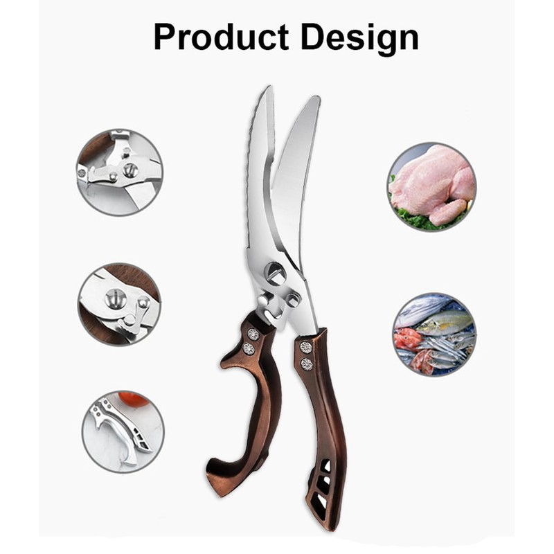 - Hochwertiges Material: Hergestellt aus hochwertigem Edelstahlmaterial, das die Schärfe und Haltbarkeit der Schere gewährleistet. Die scharfen Klingen der Fleischschere können Lebensmittel leicht schneiden.