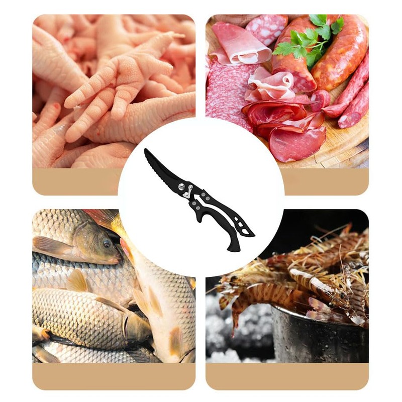 - Hochwertiges Material: Hergestellt aus hochwertigem Edelstahlmaterial, das die Schärfe und Haltbarkeit der Schere gewährleistet. Die scharfen Klingen der Fleischschere können Lebensmittel leicht schneiden.