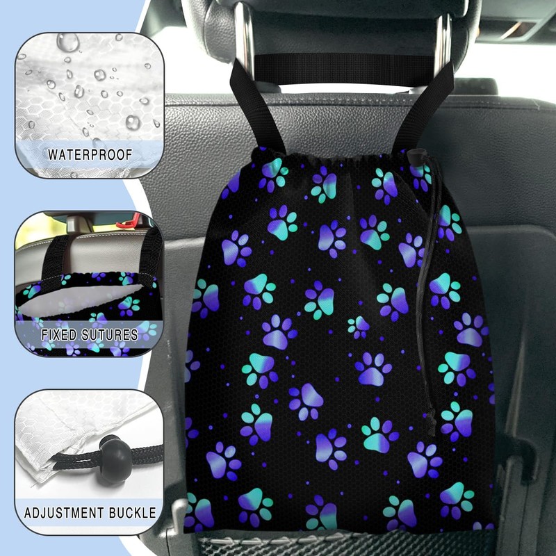 GEGEPINK Car Trash Bag Hanging Back of Seat Waterproof Small Drawstring Garbage Bags for Car Cute Printed One-Handed Strap Grocery Bags for Car Accessories-Paw Print Car Trash Bag