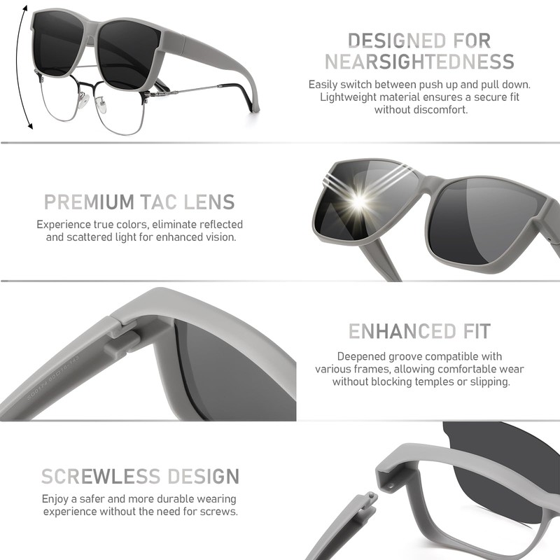 - SUNGLASSES FIT OVER GLASSES: Specifically crafted for prescription glasses wearers, these polarized sunglasses boast a large frame and wide temples, effortlessly accommodating your existing glasses. Suitable for people who wear contact lenses or with normal vision can also wear them alone.