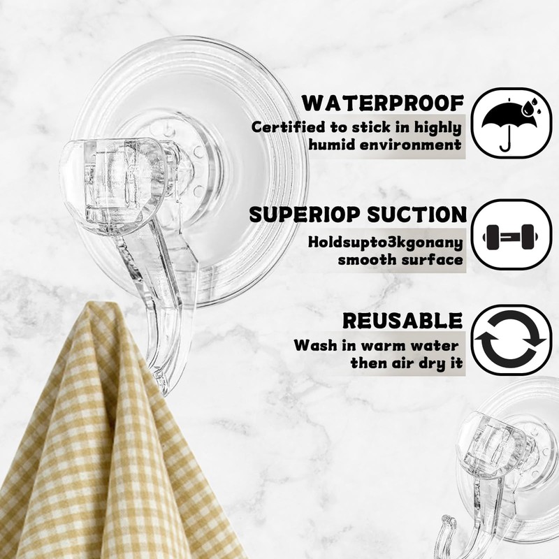 - Space-Saving Multi-Purpose Hooks: Use these versatile suction hooks in bathrooms (for robes/towels), kitchens (utensils), or living rooms (bags/hats). Even works as a wreath hanger! Their sleek design blends seamlessly while maximising storage.