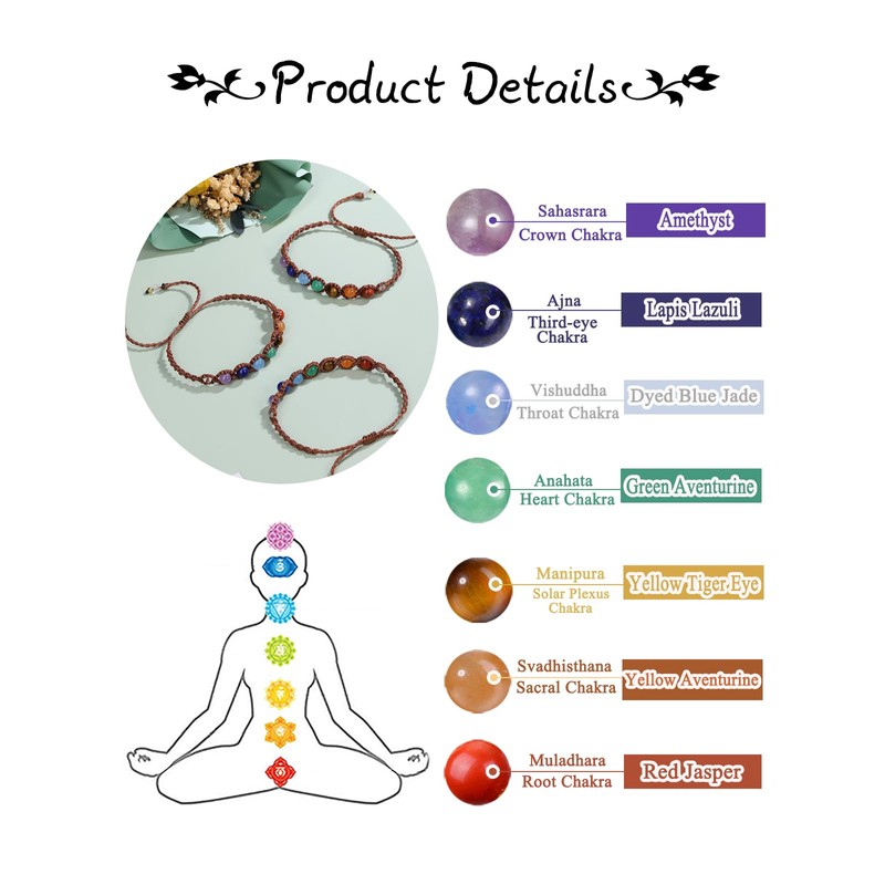 - Chakra crystal beads: amethyst, albite, blue jasper, green aventurine, tiger eye, yellow aventurine, red stone. Each spiritual color of the energy healing gemstone is closely linked to a specific chakra, making it ideal for chakra healing, energy balance and anxiety relief.