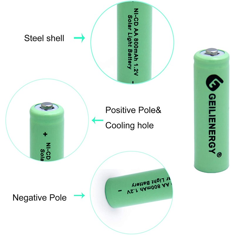 GEILIENERGY NICD AA 800mAh Rechargeable Battery for Solar Light,Solar Lamp,Garden Lights(Pack of 20)