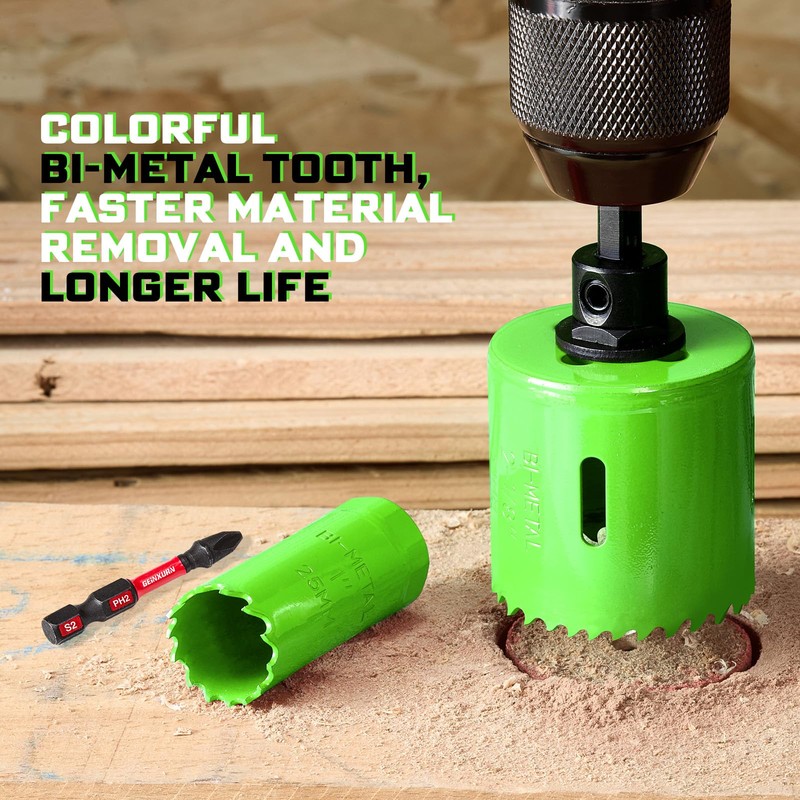 Geinxurn 1-3/8" - 1-3/4" M2 Steel Door Lock Installation Kit for Metal and Wood Doors with Guide Template, Door Lock Hole Saw(Green)