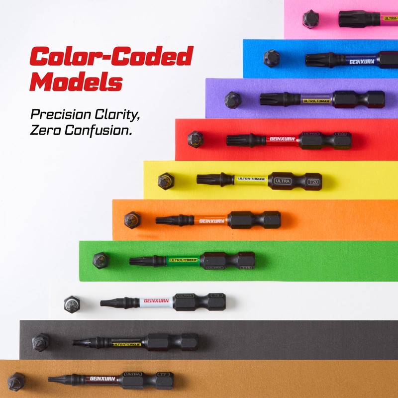 - Torx Screwdriver Bit Set, 13PCS-1 inch T25,13PCS-2 inches T25 driver bits and 1 Pc2.4” Bit Holder, they're all have a customized color coded base.