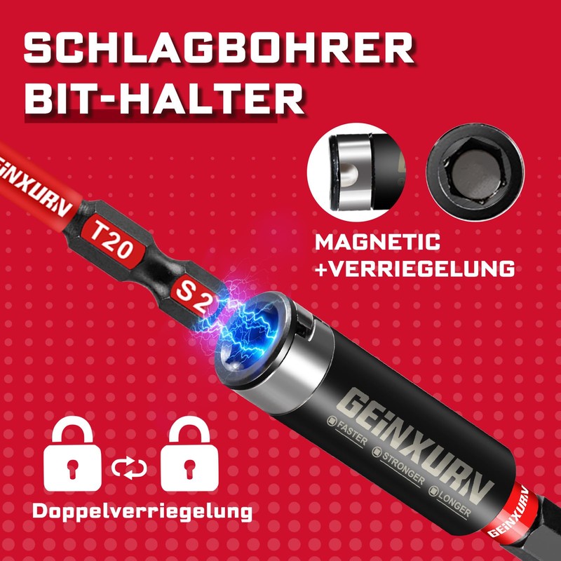 • Impact-resistant screwdriver bit set: 30 pieces 50 mm T20 with 1 piece 60 mm bit holder, the shock-absorbing zone withstands impact drivers. It can handle the new generation of high-torque impact drivers