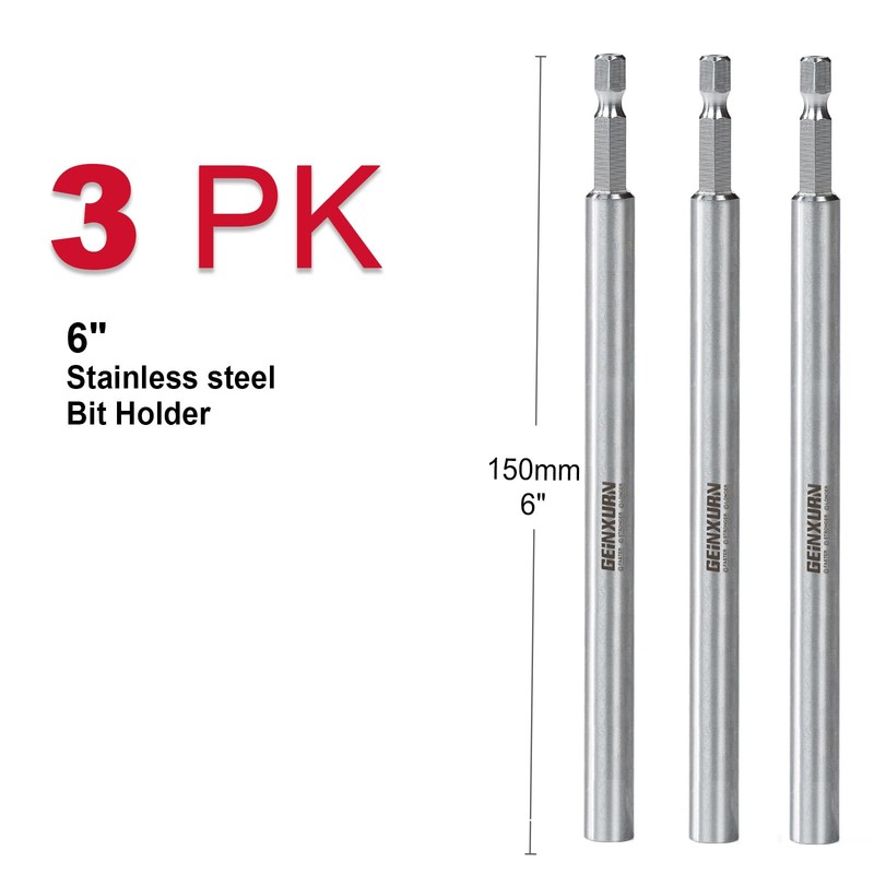 - 3PACK BIT HOLDER — Made of stainless 6inches(150mm) quick connect drill bit holder, Heat-treated manufacturing for increased durability.