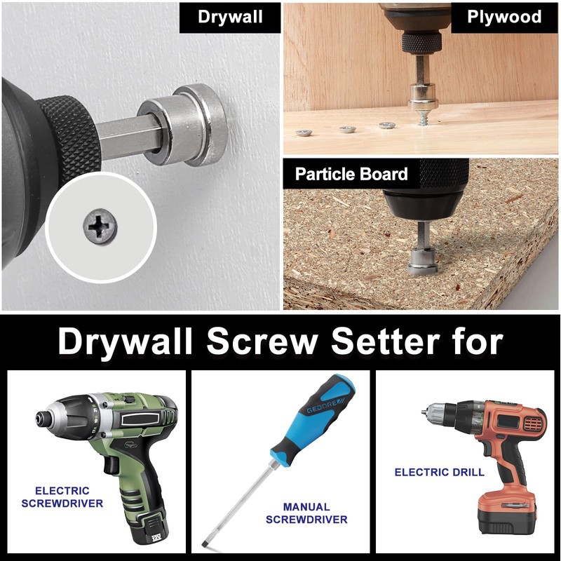 • Drywall Screw Setter: Efficient and precise drywall screw setter bit for plasterboard screws, ensuring accurate and flush installations every time. Providing quick and efficient screwing without damaging the surface