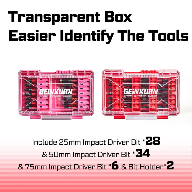 - Storage Box: The clear box allows you to see the contents at a glance, and the included storage box is compact for easy removal of bits and customized placement. It features dedicated slots for individually storing each screwdriver bit.