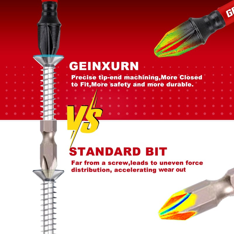 - IMPACT MAGNETIC RATED BITS:Double Impact Shock Absorbent Zone stands up to impact drivers. It can be handled a new generation of higher torque impact drivers. Permanent magnetic tips help prevent dropped screws