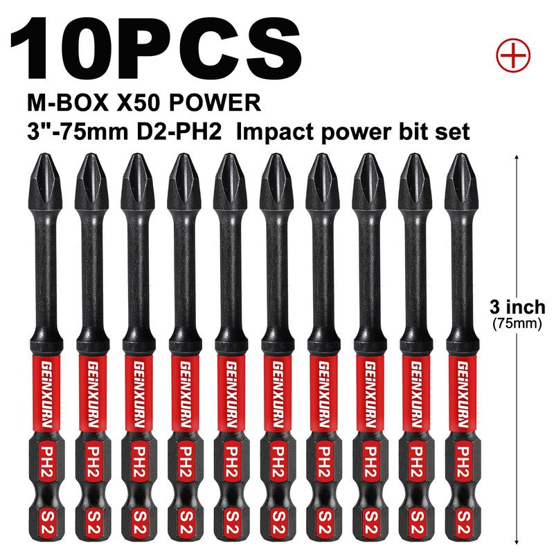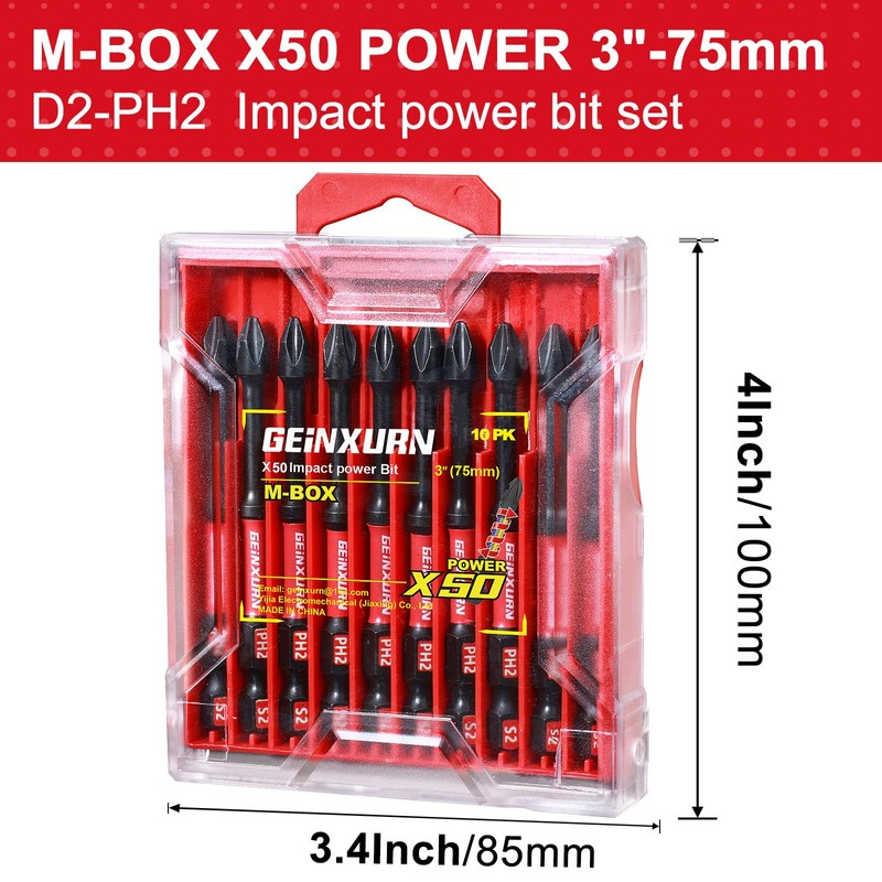 Geinxurn Impact Tough 3 in. #2 Phillips Screwdriver Bits Set,10 Pack Magnetic D2 Steel Long Cross PH2 Power Driver Bits with Storage M-Box