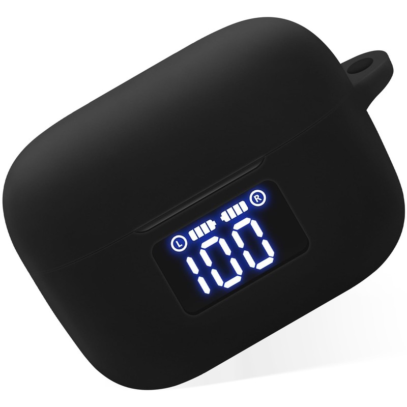 Geiomoo Silicone Case for TOZO Tonal Fits(T21), Protective Cover with Carabiner (Black)