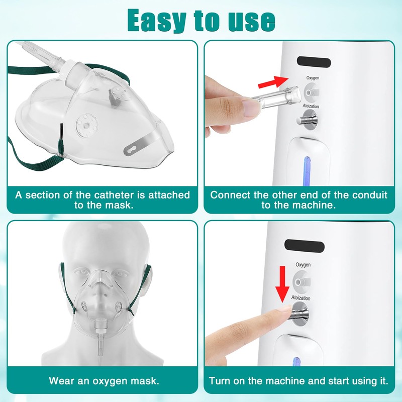 - Safe & Easy to Use: Designed with all people in mind, the oxygen mask is simple setup: 1. Check the package is intact; 2. Unpack and check that the oxygen pipe is intact. 3. Connect the catheter port to the oxygen supply port of the oxygen equipment, open the oxygen equipment, and adjust the flow rate to the appropriate level; 4. Ensure that the oxygen pipe is tightly connected to mask; 5. Adjust the oxygen mask elastic band and metal strip to ensure that it is snug to the face