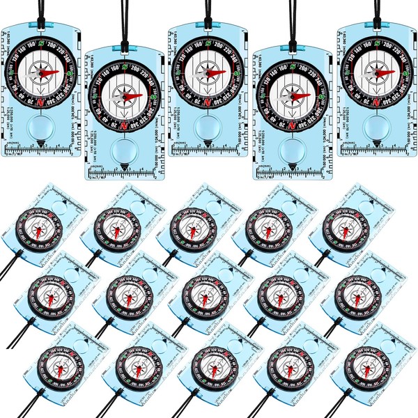 Geiserailie 20 Pcs Acrylic Orienteering Compass, Navigation Backpacking Compass Hiking Compass Map Reading Compass for Navigation Orienteering and Survival Outdoor Camping, Blue