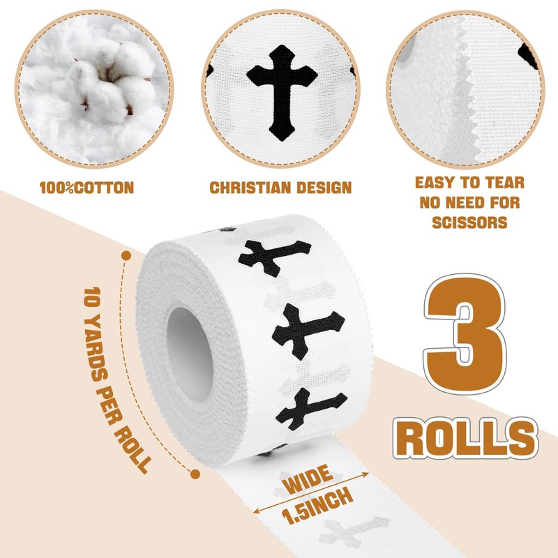 - Packaging Includes: you will receive 3 rolls of sports tape, featuring christian pattern printed on them; Each measures 1.5 Inches x 10 Yards, specifically designed for Christian athletes, allowing you to display your faith in sports; It is very suitable for Christian athletes
