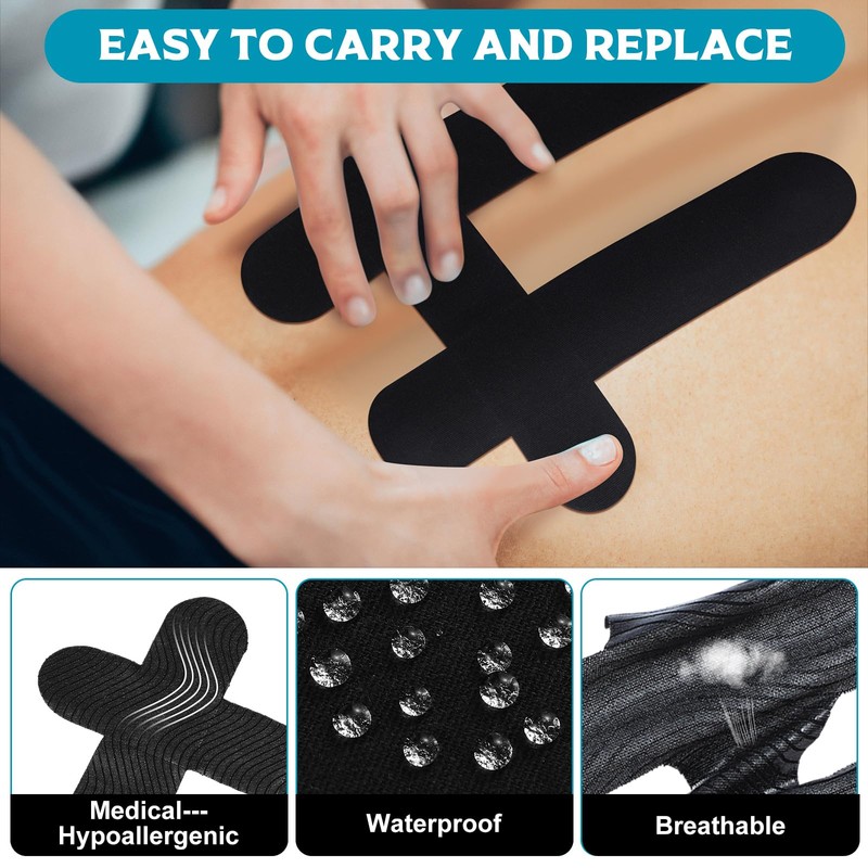 - Waterproof and elastic: Our precut kinesiology tape for lower back has a special waterproof coating, which will not lose its effectiveness due to water or sweat, and the back tape for lower back stability can be stretched up to 180% of its length, so it is easy to stretch to the desired length and not easy to tear