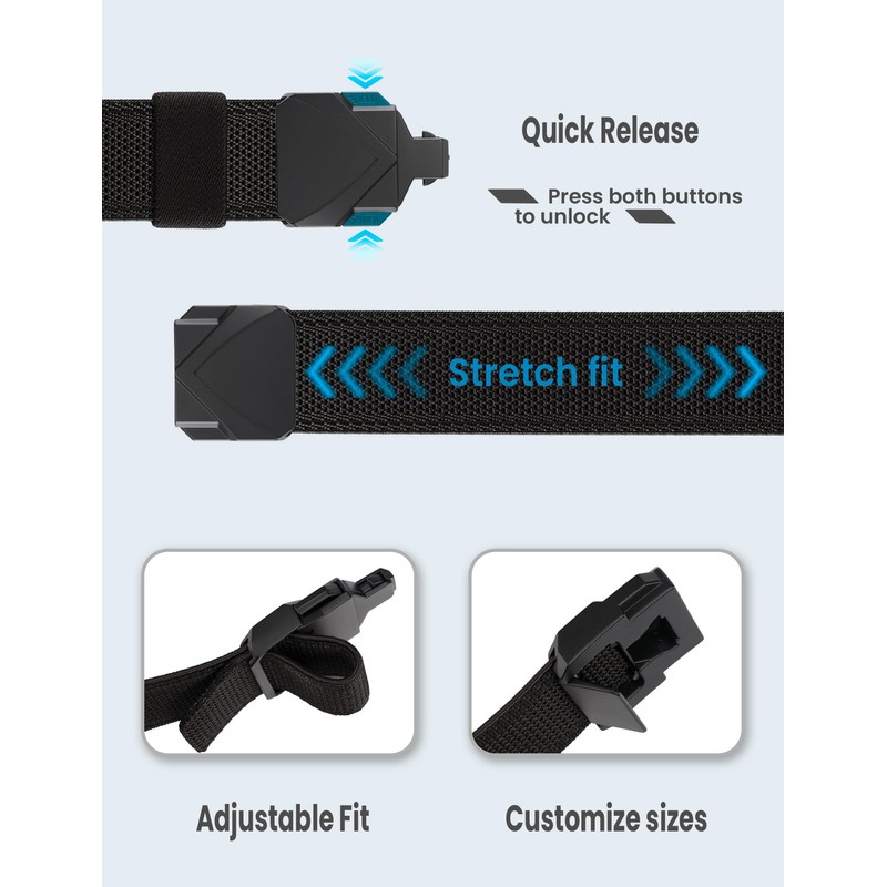 • VERSATILE STYLE:This practical elastic belt will become an ideal accessory to wear as an everyday belt. This nylon belt is not only great for daily work or leisure activities, but also great for golf, hiking, camping, outdoor activities, tactical use, etc