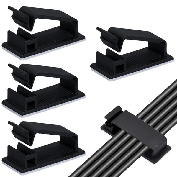 GEJ-Tech Cable Clips, Wire Organizer, Cable Holder, Double Sided Tape, Black, White, Wire Stop, Set of 25 (M, Black)