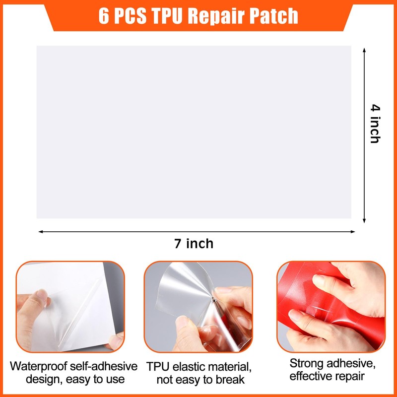 • Reliable PVC Patches: our repair patches are made from PVC material; They're sturdy, waterproof, safe and reliable, capable of standing up to the rigors of regular use without tearing or breaking; Each patch measures 6 x 4 inches, and you can cut them into smaller sizes to meet your specific requirements